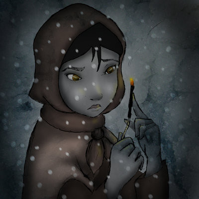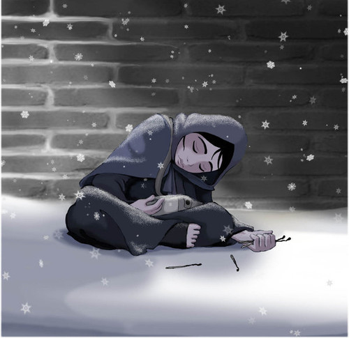 A menina trazia nas mãos um molho de fósforos e no bolso do avental tinha mais. Ninguém lhe tinha comprado nada nesse dia. De certeza que o pai ia ficar furioso e, além disso, em casa também estava frio, uma vez que o vento assobiava pelas fendas do telhado.