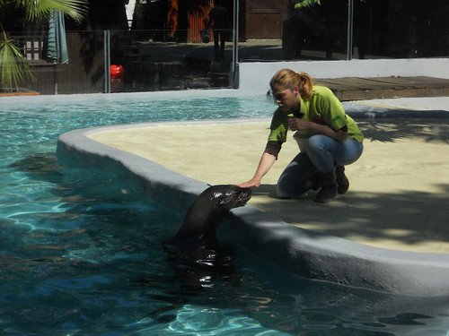 O Nico fazia tudo o que a tratadora pedia. Imitou um tubarão e uma foca. Também nadou velozmente como se estivesse a fugir dos predadores, provocando ondas que quase nos molharam. Entre outras brincadeiras, o Nico separou o lixo e colocou-o nos ecopontos certos.
